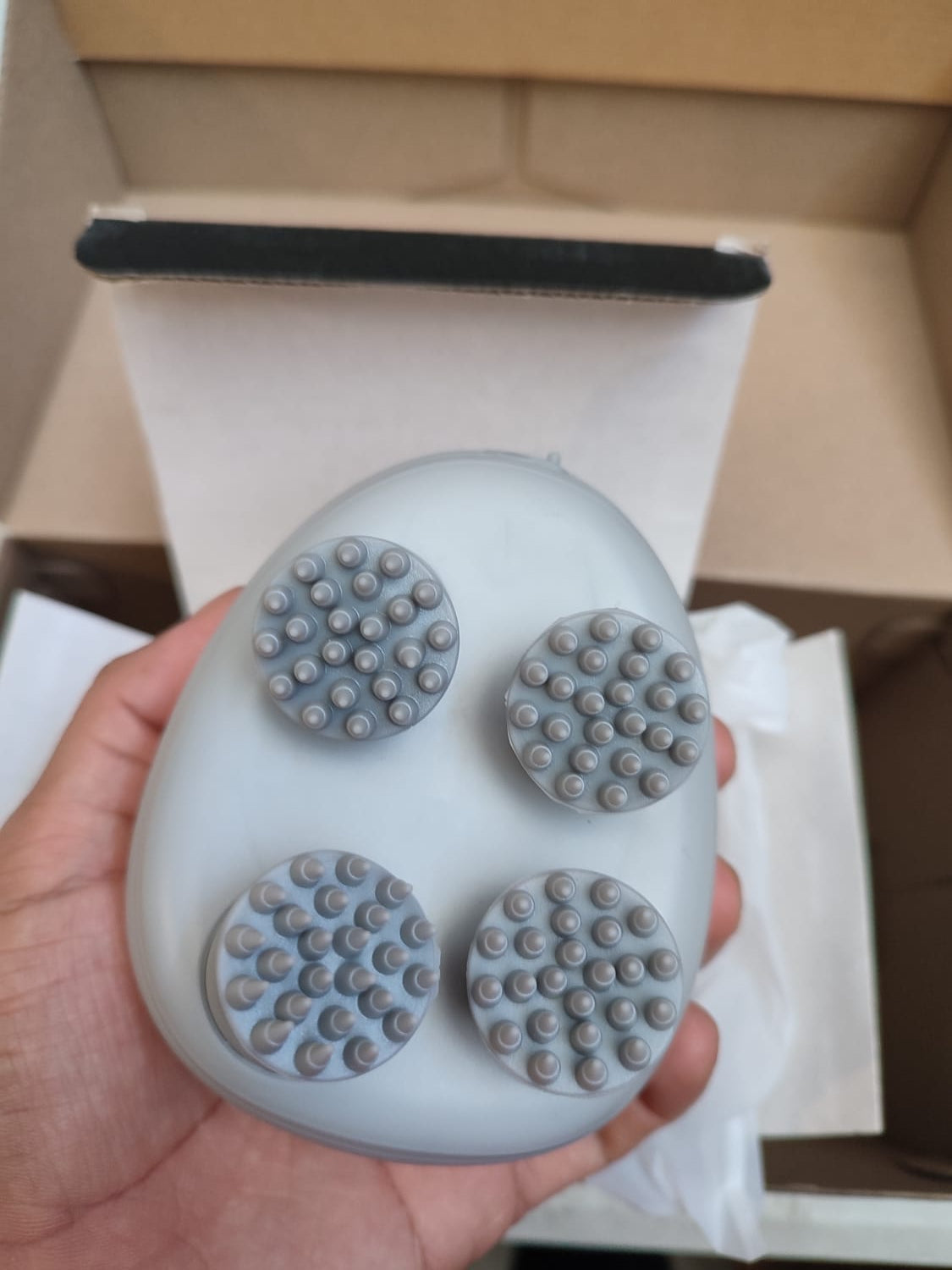 Este masajeador portatil , de carga rapida , funciona al presionar el boton de encendido